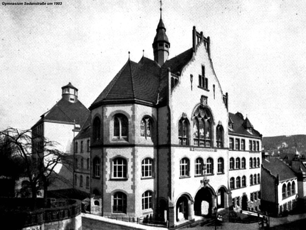 Das Schulgebäude um 1903 als Desktop-Hintergrundbild.